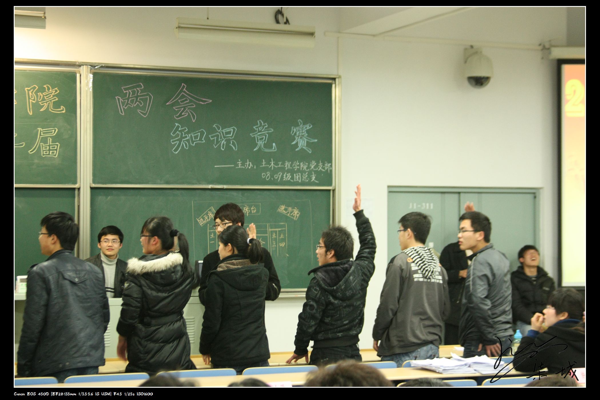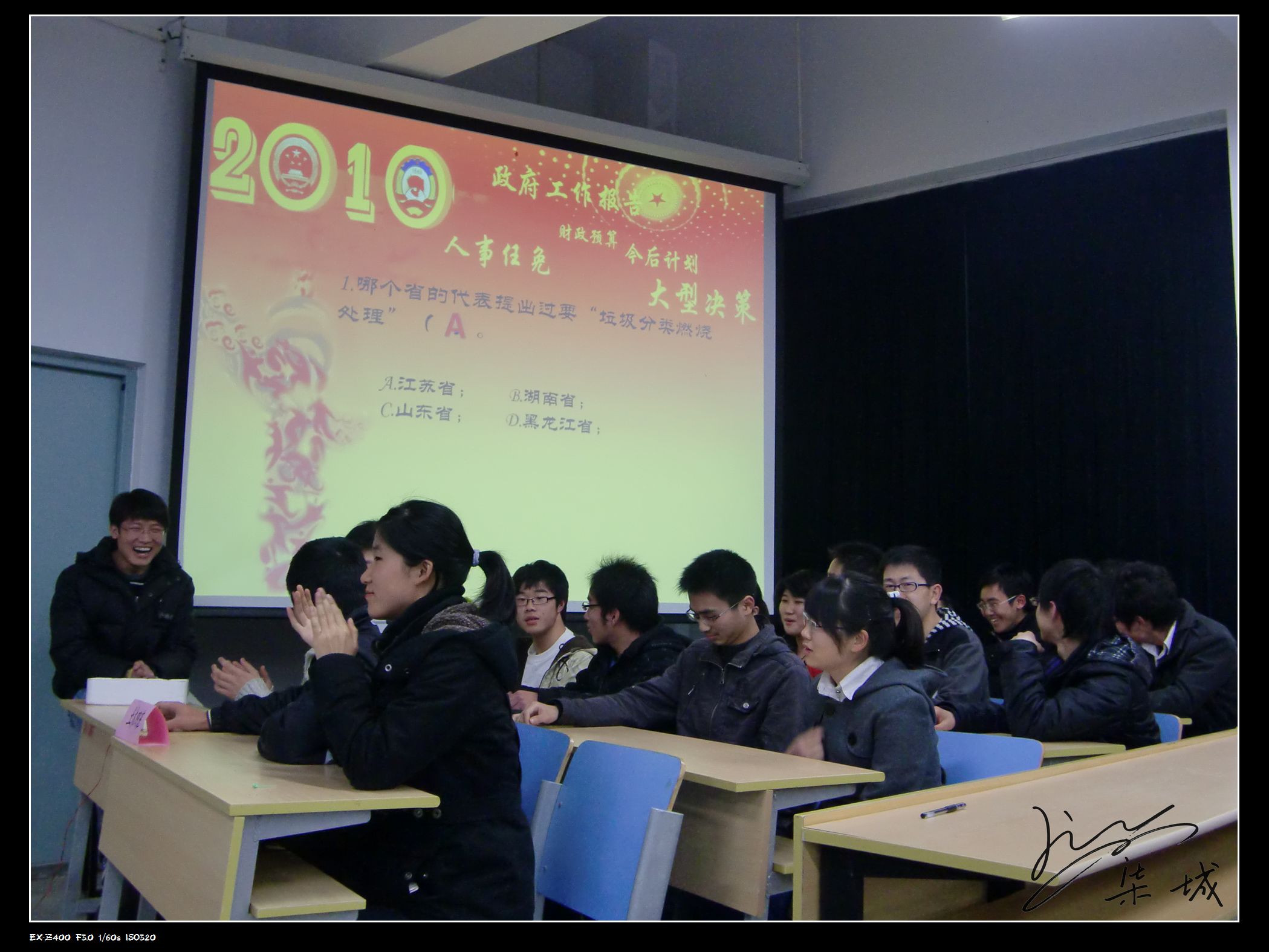 参加这次知识竞赛的共有七支联队,每支联队均由三名09级学生和两名08级学生组成,同时还有各自专业、班级的同学组成亲友团为他们加油。比赛的内容涵盖了本届两会的政府工作报告及热点提案、决议,历届两会的著名人物、典型议案、相关政策等。