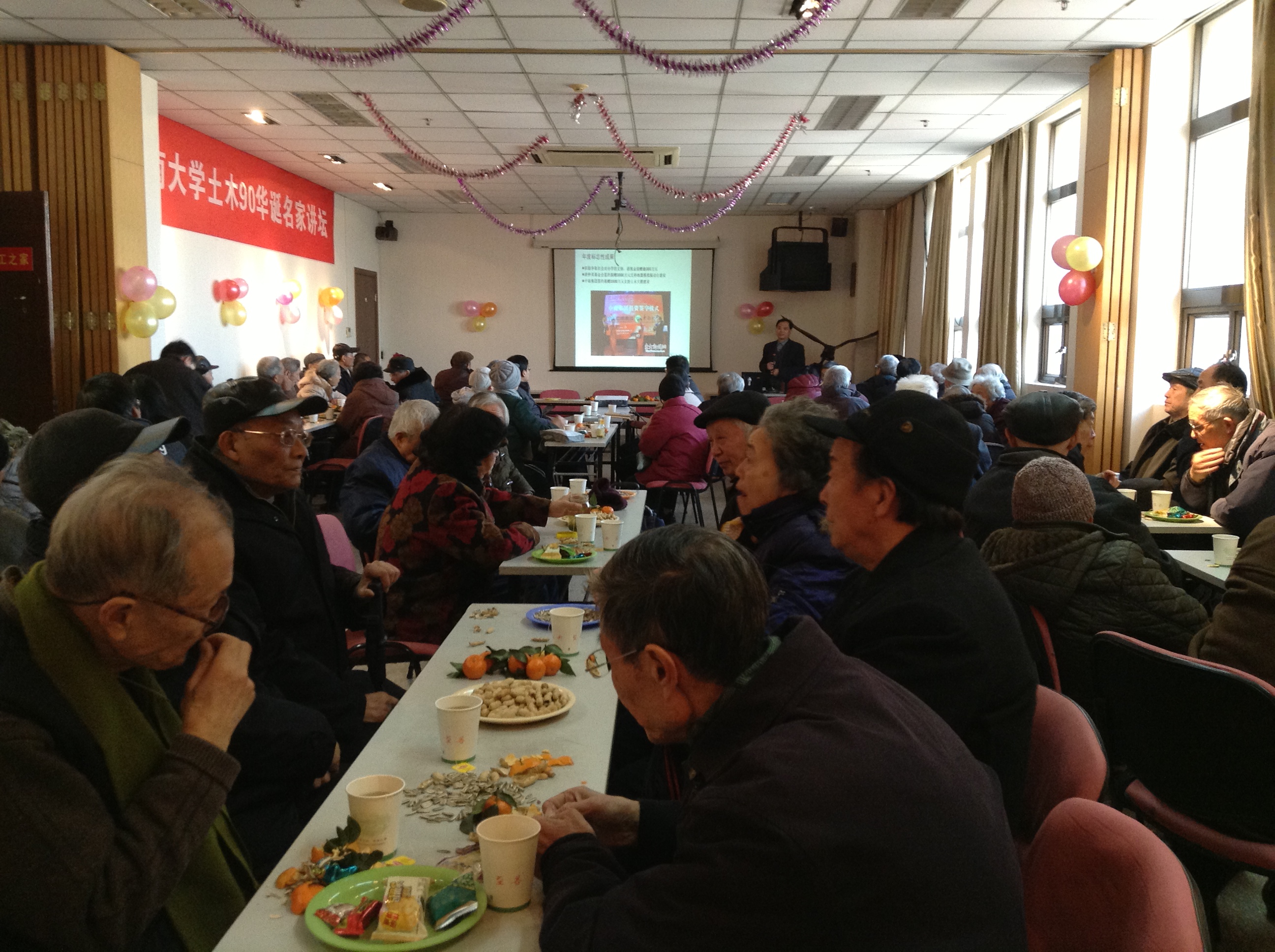 2013年12月27日下午,williamhill官网退休教师欢聚逸夫建筑馆1501,举行一年一度的退休教师座谈会,共同迎接2014年元旦。WilliamHill官方网站党委书记张星老师、建筑工程系主任孟少平老师、建设与房地产系主任李启明老师、工程力学系主任费庆国老师、市政工程系主任孙越老师、桥隧与地下工程系书记戴国亮老师、实验中心主任宗周红老师、院办主任王玉玲老师、人事秘书张蔼玲老师、学办陈韵老师和全院退休教职工一起参加了本次活动。