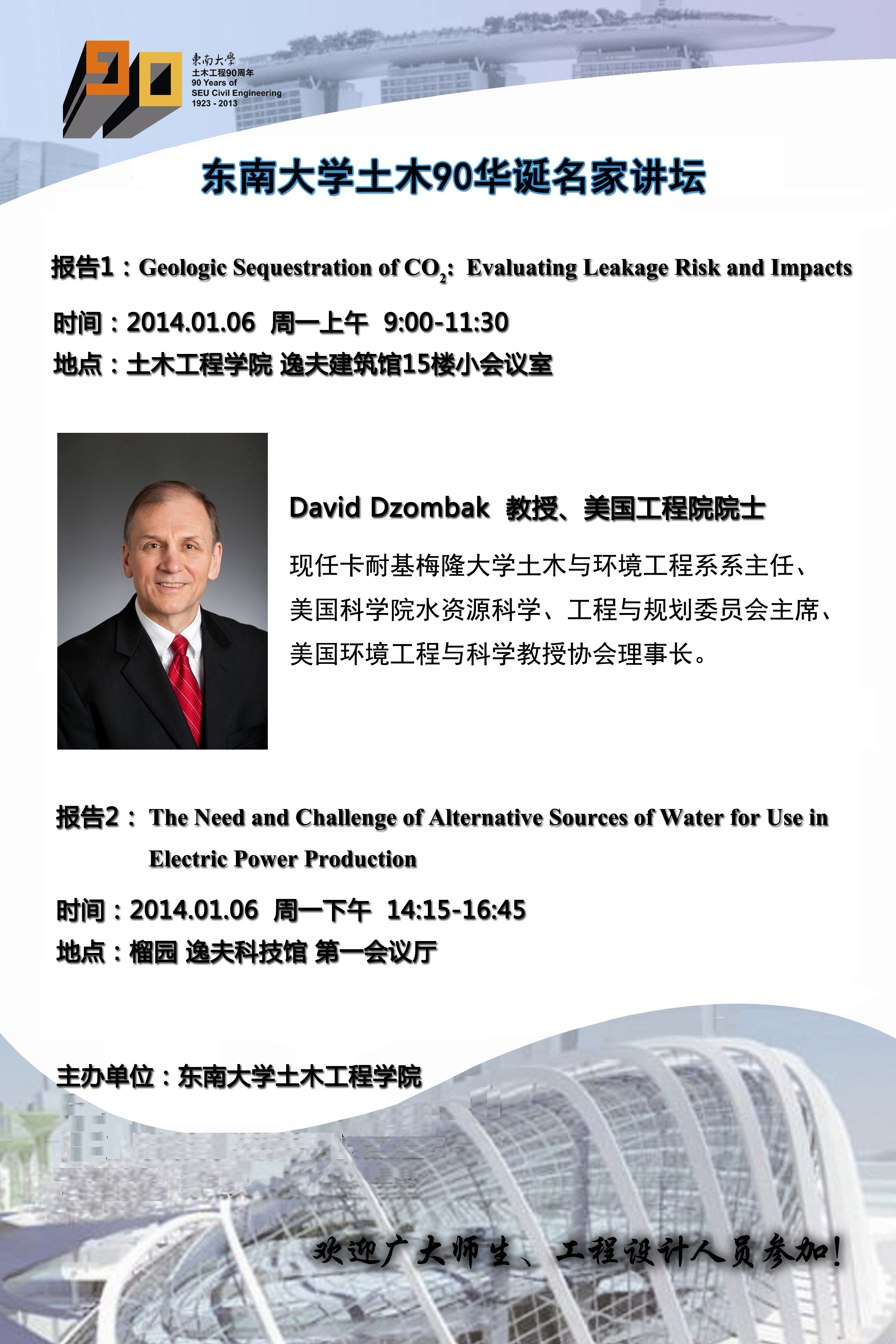东大土木90华诞名家讲坛——美国工程院院士David Dzombak教授