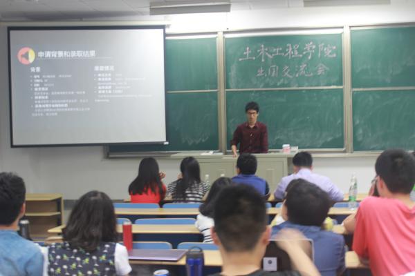为了更好地让有出国意向的同学们了解海外深造的相关事宜,williamhill官网12级团总支于4月28日晚18:30在教二105,举办了出国留学交流会,这也是本学期毕业意向交流会系列的第二场。参加这次交流会的有12级辅导员张斯琦老师,11级申请出国留学成功的八位学长学姐:王溧宜、黄家豪、刘汐宇、徐宁悦、陈一鸣、鲁冰、何昕昊和陈昊霖,以及大一至大三有出国意向的同学们。