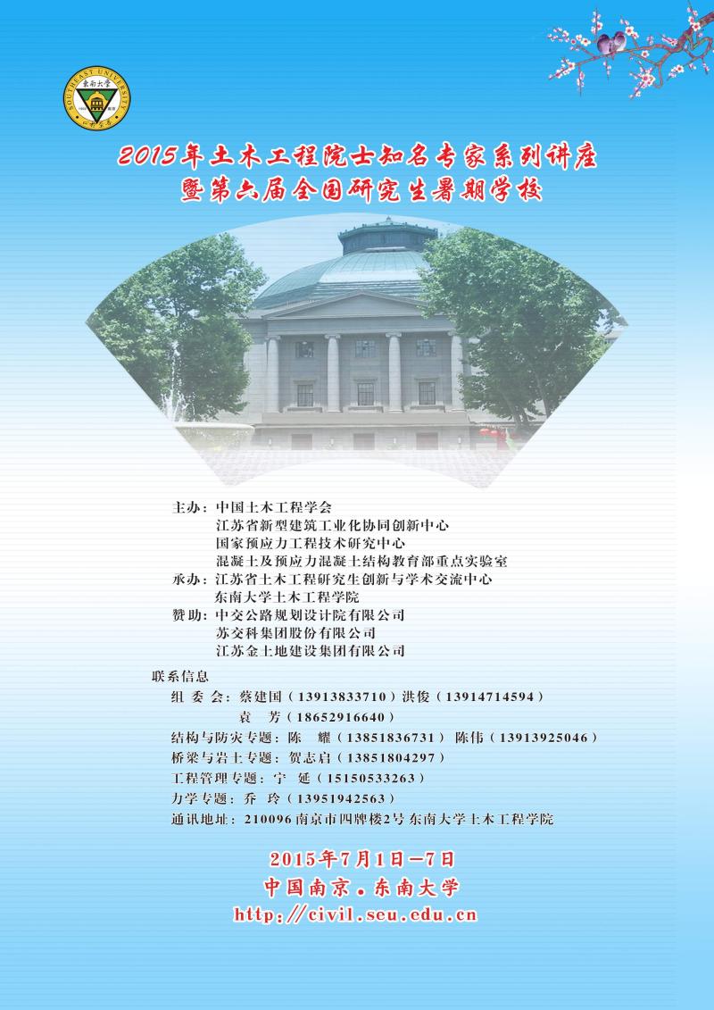 2015年土木工程院士知名专家系列讲座暨第六届全国研究生暑期学校(第一号通知)http:/e8/19/c1252a124953/page.htm