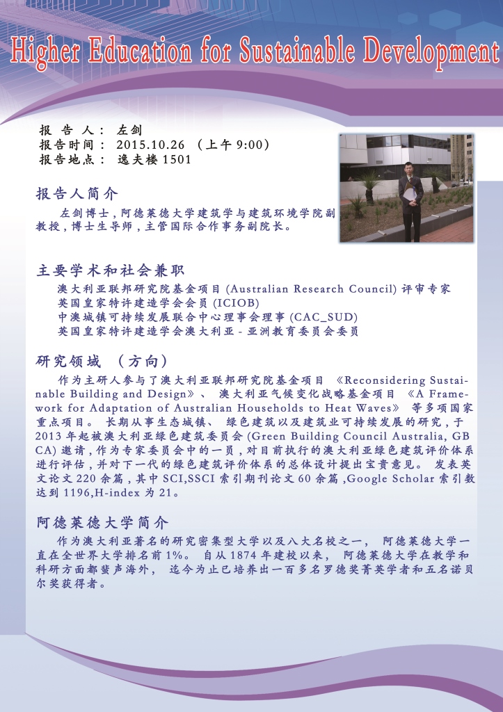 澳大利亚阿德莱德大学左剑教授学术报告会