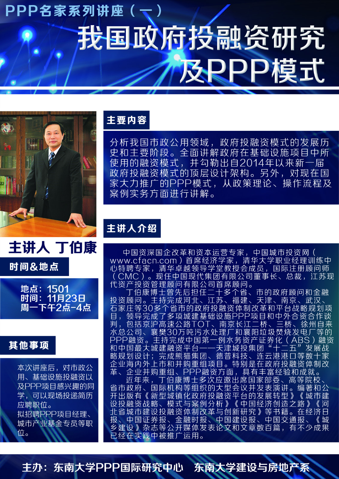 PPP名家系列讲座(一)——我国政府投融资研究及PPP模式