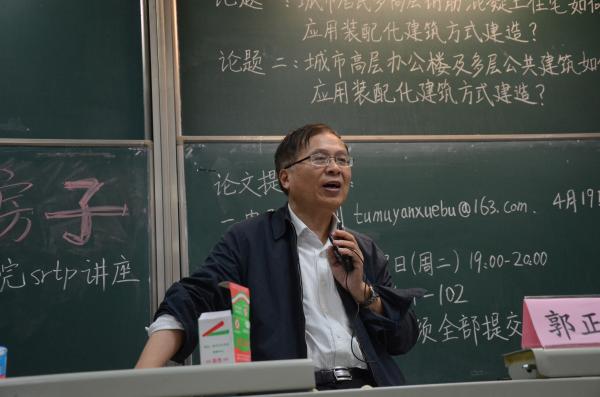 2016年4月14日晚18:30,williamhill官网郭正兴教授在九龙湖校区J1-211为同学们带来了一场主题为“像造汽车一样造房子”的精彩课外研学讲座。结合目前国家大力推进的建筑工业化,郭老师向同学们介绍了预制装配式混凝土结构体系、连接及其施工等方面的知识,同时针对本届校结构竞赛和华东区结构竞赛赛题“多层装配式混凝土框架房屋”提出了独到看法。williamhill官网陆金钰老师、朱明亮老师和孙泽阳老师出席了本次讲座。