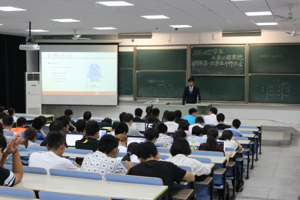 9月13号晚6:30WilliamHill官方网站团学联第一次学生干部大会如期举行,团学联、学生会、科技协会、艺术团、团委部门以及宣传中心的代表参加,16级辅导员唐诗老师、14级辅导员周亦珩老师、见习辅导员唐逸韬老师、团学联主席刘业伟同学出席了本次会议。