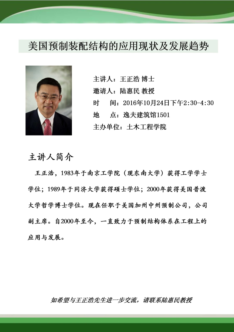 美国加州中州预制公司王正浩博士学术报告会
