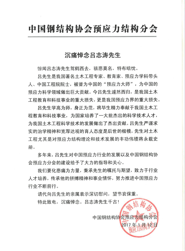 沉痛悼念吕院士 —— 中国钢结构协会预应力结构分会
