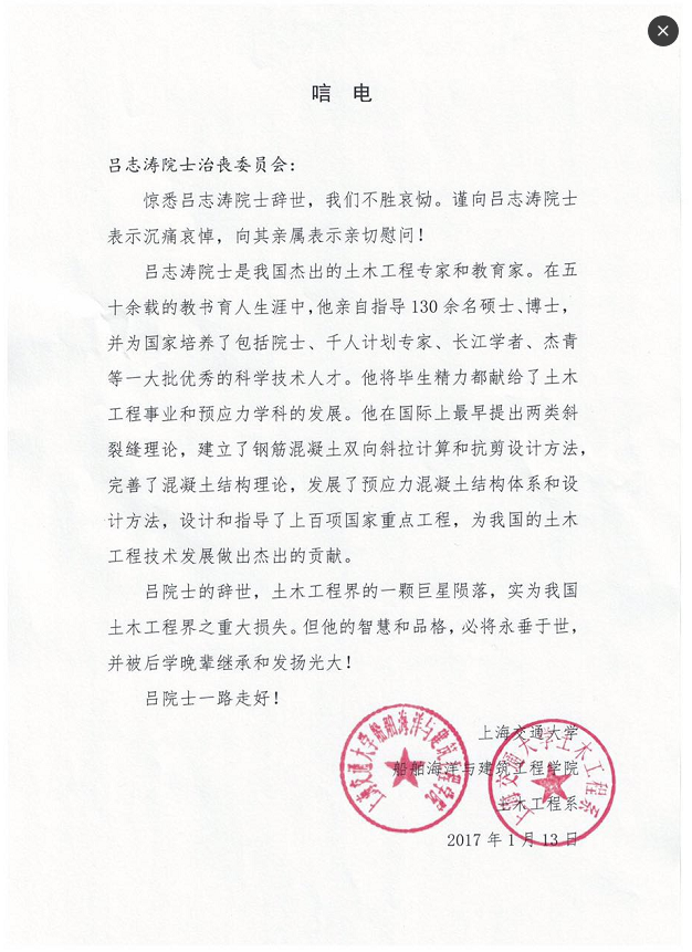 痛悼吕院士 ——上海交大船舶海洋与建筑工程学院