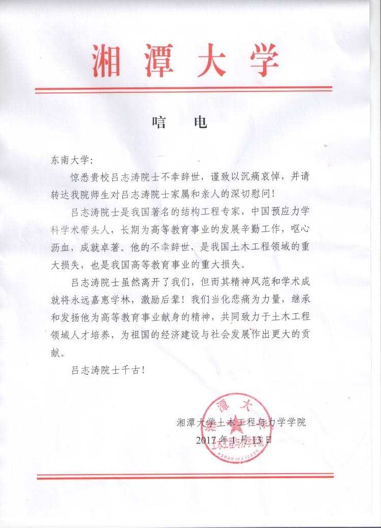 痛悼吕院士 ——湘潭大学土木工程与力学学院