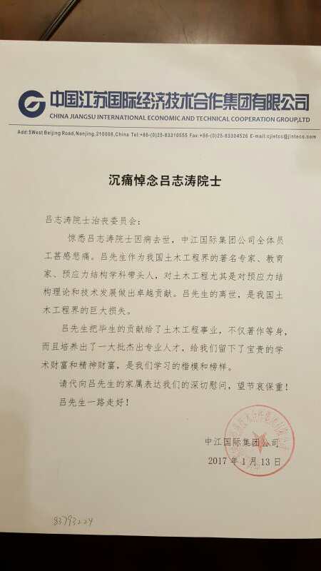 沉痛悼念吕院士 ——中国江苏国际经济技术合作集团