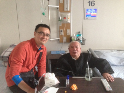 大约两个月前,知道先生身体不好、在住院治疗,于是离宁赴美前,特意和叔叔徐实一起去鼓楼医院探望先生。当时先生气色尚好,只是身体虚弱,说话有些吃力。前一日刚有大批的老师和学生来给他过八十寿辰。先生见到我很高兴,问我现在怎样以及我儿子的情况 …… 临走前还特地和我合影留念。临出门前,心里有种酸酸的感觉,忍不住又回头多望了一眼,看见老人慈祥微笑着向我道别。没想到这一别竟是永别,从此阴阳相隔,再也无法聆听教诲 ……