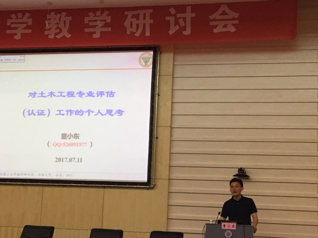 williamhill官网童小东老师应邀在同期举行的第五届全国土力学教学研讨会上作了题为“对土木工程专业评估(认证)工作的个人思考”的特邀报告,得到了与会者的一致好评。会议由中国土木工程学会土力学及岩土工程分会土力学教学专业委员会主办、河海大学及教育部岩土力学与堤坝工程重点实验室承办,来自全国近90所高校、出版社和企业的近300名代表参会。