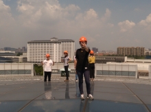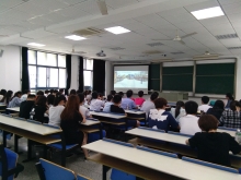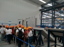 | 正大天晴药业基地大楼幕墙玻璃 | 正大天晴药业基地大楼幕墙龙骨 | 050973班周东校友做幕墙知识讲座 | 手执激光笔者周东校友(右二) |