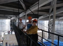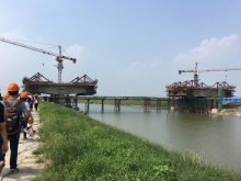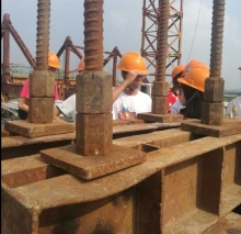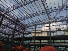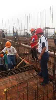 | 将军山初级中学装配式建筑(冯绍永) | 我为吊装好的叠合梁、板嵌缝 | 临江中学全钢结构体育馆(黄清 等) | 参观在建中的干河大桥(杜妍慧摄) |