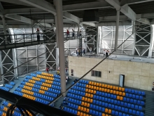 | 土木结构及抗震实验室(李岱枰摄) | 实验室及振动台基础(葛涵宇、冯绍永摄) | 竣工前的桃园食堂二期 | 仰视九龙湖体育馆穹顶 |