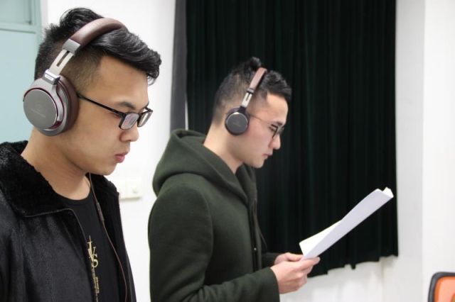 志愿者进行有声读物的录制