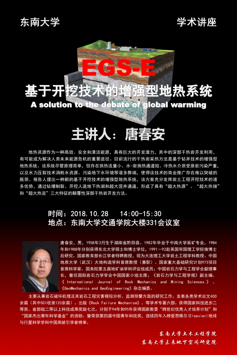 学术讲座:基于开挖技术的增强型地热系统