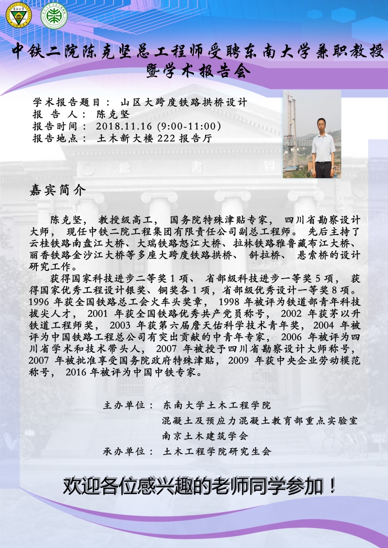中铁二院陈克坚总工程师受聘williamhill英国官网兼职教授暨学术报告会