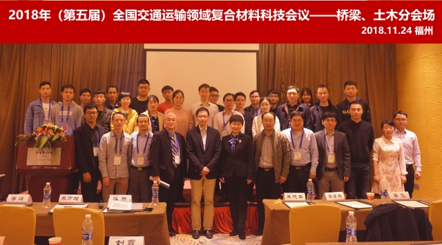 11月24日,第五届全国交通运输领域复合材料科技会议在福州顺利召开。本次会议由中国复合材料学会主办,WilliamHill官方网站等承办。大会邀请了加拿大工程院院士RazaqpurAbdulGhani、中冶建筑研究总院李荣教授、台湾中央大学黄伟庆教授、台湾海洋大学黄然教授、中车青岛四方机车车辆股份有限公司丁叁叁教授等做大会报告。大会共设车辆、海洋与船舶、轨道交通、桥梁土木和海峡两岸五个分会场,其中“桥梁土木”分会为首次举办。williamhill官网汪昕教授作为该分会主席组织并参与了本次会议。