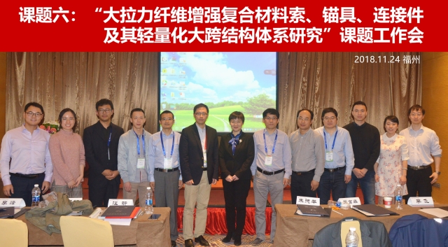 11月24日,国家重点研发计划“高性能纤维增强复合材料与新型结构关键技术研究及应用”课题年度工作会在福州顺利召开。国家重点研发计划项目由中冶建筑研究总院有限公司牵头,分八个课题,其中课题六“大拉力纤维增强复合材料索、锚具、连接件及其轻量化大跨结构体系研究”由williamhill英国官网承担,williamhill官网汪昕教授担任课题负责人。课题参与单位包括:湖南大学、南京工业大学、后勤工程学院、江苏绿材谷新材料科技发展有限公司。