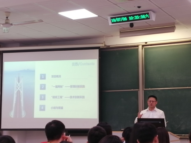 上午第二场报告,港珠澳大桥管理局的局长助理高星林教授级高级工程师为学员们带来了题为“新发展理念和高质量发展的实践:港珠澳大桥项目管理经验分享”的讲座。