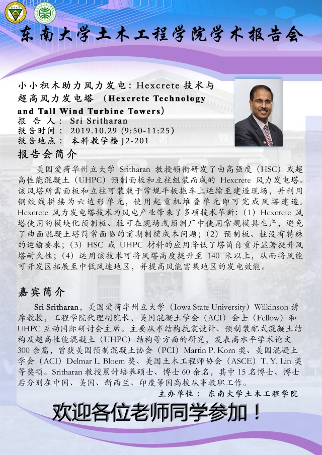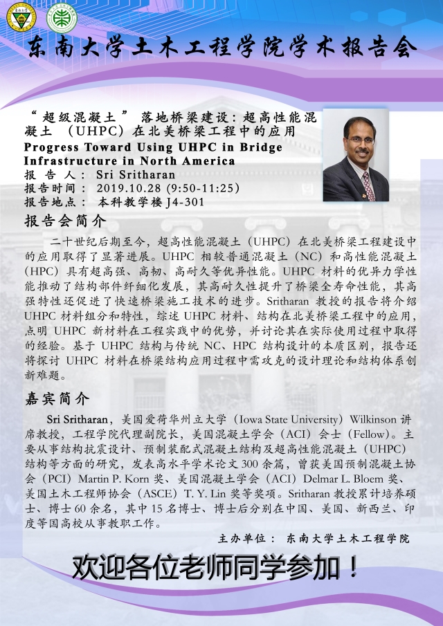 美国爱荷华州立大学Sri Sritharan教授系列学术报告会