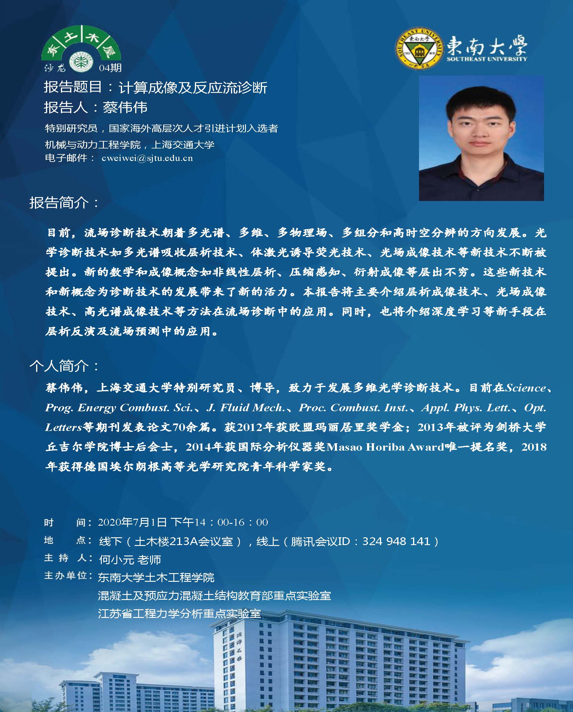 东土木屋沙龙第4期 | 学术报告:计算成像及反应流诊断