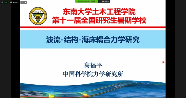 中国科学院力学研究所高福平研究员为学员们带来下午第二场特邀报告,报告题目为“流波-结构-海床耦合力学研究”。