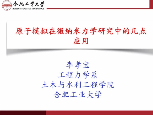 晚上,力学专题邀请合肥工业大学李孝宝特聘研究员带来了题为“原子模拟方法在微纳米力学研究中的几点应用”的报告。李老师简要介绍了微纳米力学的发展历程;在此基础上,详细讲解了二维纳米材料的力电磁性质研究、纳米尺度的力电耦合原子模拟和纳米金属的剪切力学行为研究。