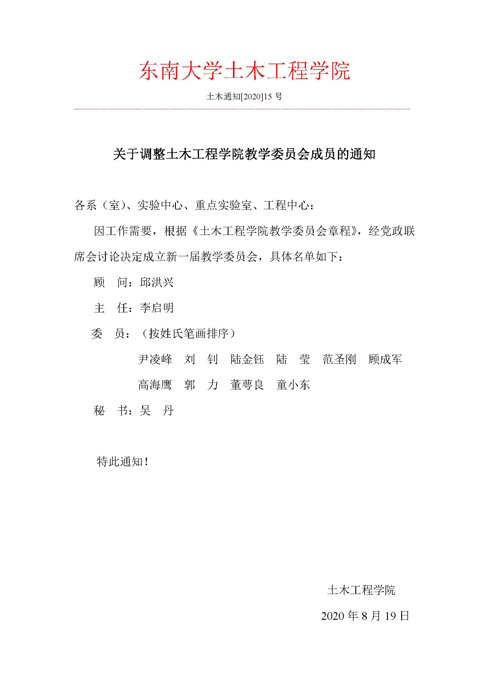 关于调整WilliamHill官方网站教学委员会成员的通知