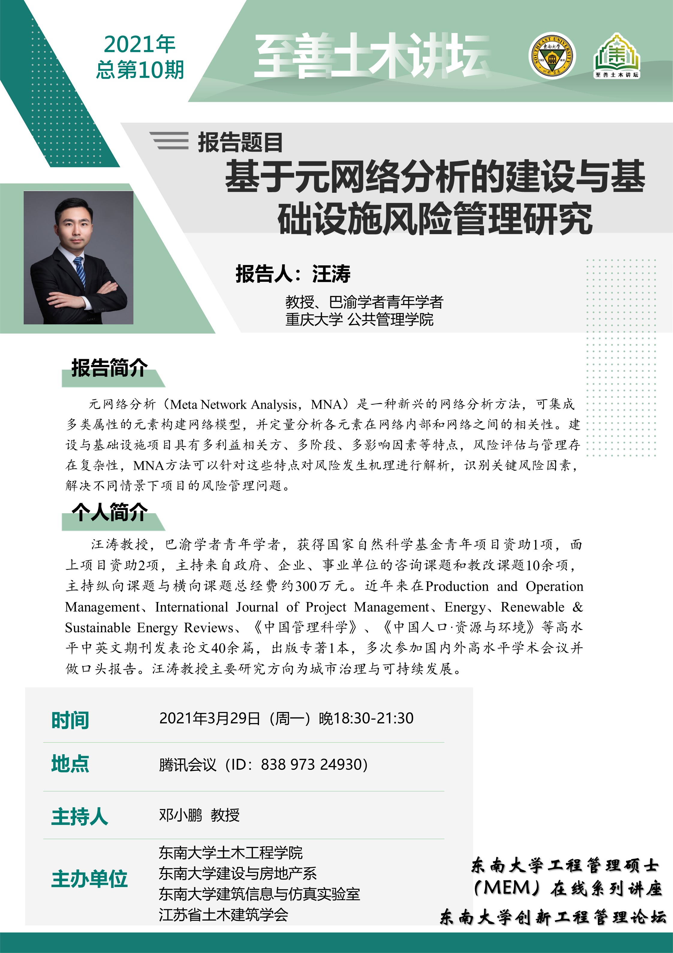 至善土木讲坛 2021年总第10期|基于元网络分析的建设与基础设施风险管理研究