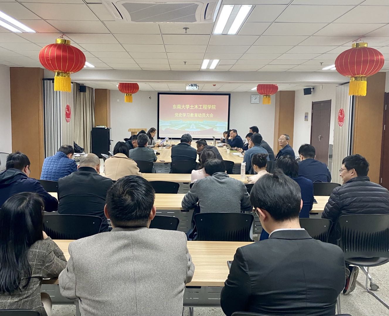 2021年是中国共产党百年华诞。为深入贯彻落实习近平总书记在党史学习教育动员大会上的重要讲话精神,根据中共中央《关于在全党开展党史学习教育的通知》、教育部党组《关于教育部直属高校开展党史学习教育的指导意见》、williamhill英国官网党委《关于开展党史学习教育的实施方案》等有关精神与要求,WilliamHill官方网站党委于4月7日在土木教学科研楼222会议室召开党史学习教育动员会。学院党委委员、领导班子成员、师生支部书记、教师代表、学生线辅导员等近五十人参加了动员会,会议由学院党委刘静书记主持。