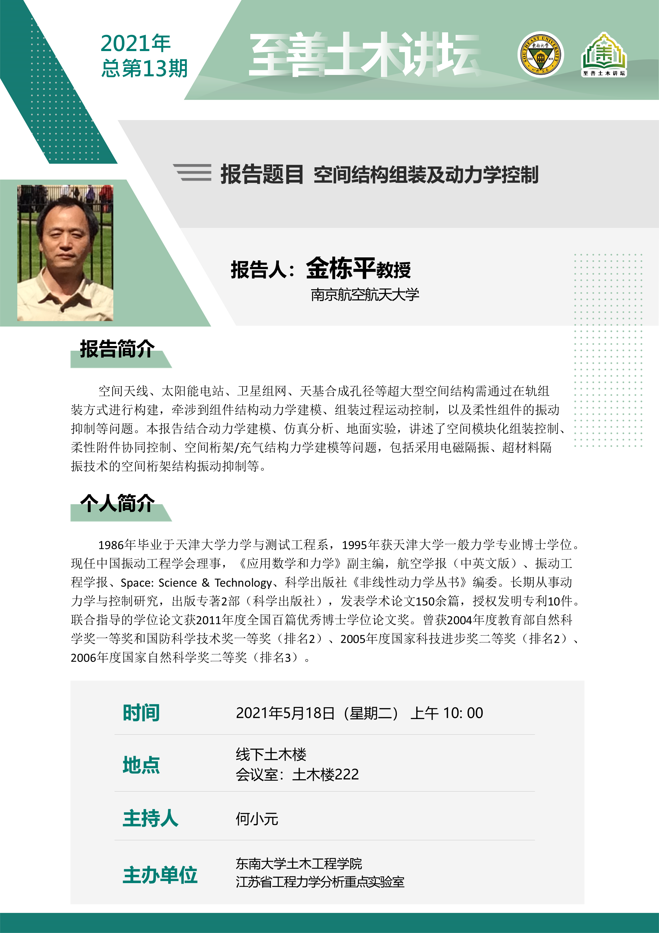 至善土木讲坛 2021年总第13期|空间结构组装及动力学控制