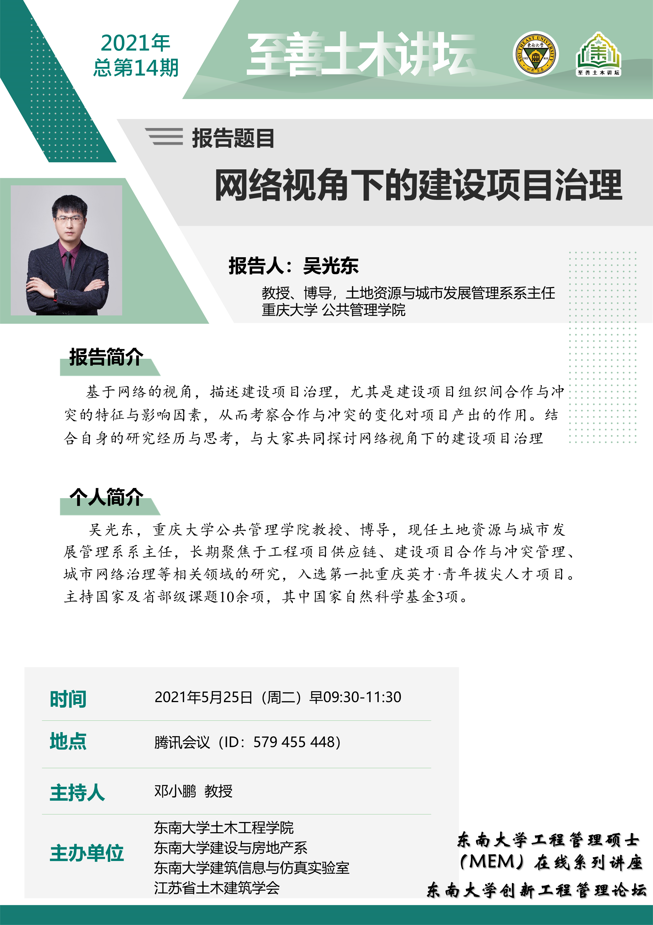 至善土木讲坛 2021年总第14期|网络视角下的建设项目治理