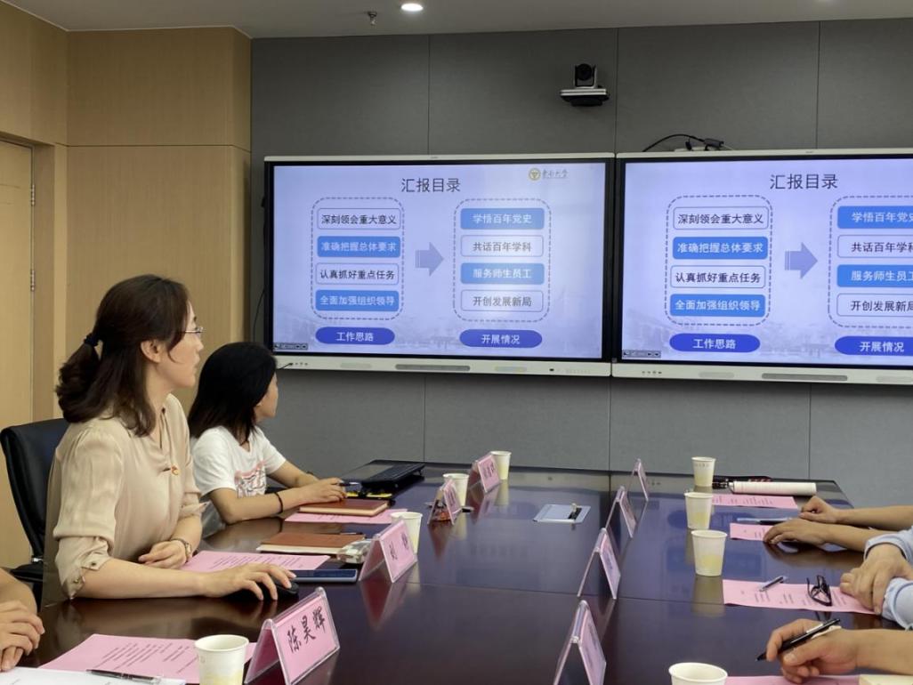随后,指导组一行在313A会议室听取了刘静书记关于学院开展党史学习教育的工作报告。刘书记对指导组各位领导的莅临指导表示热烈欢迎,并就学院党史学习教育的工作思路及开展情况进行了详细汇报。williamhill官网党委带领全院师生员工深入学习贯彻习近平总书记在党史学习教育动员大会上的重要讲话精神,动员全院上下迅速兴起党史学习教育热潮,以“深刻领会重大意义、准确把握总体要求、认真抓好重点任务、全面加强组织领导”为工作思路,从“学悟百年党史”、“共话百年学科”、“服务师生员工”、“开创发展新局”四维度开展党史学习教育,统筹推进“建设一流师资队伍”、“培养一流领军人才”、“开展一流科学研究”、“培育一流学科文化”四大行动计划。