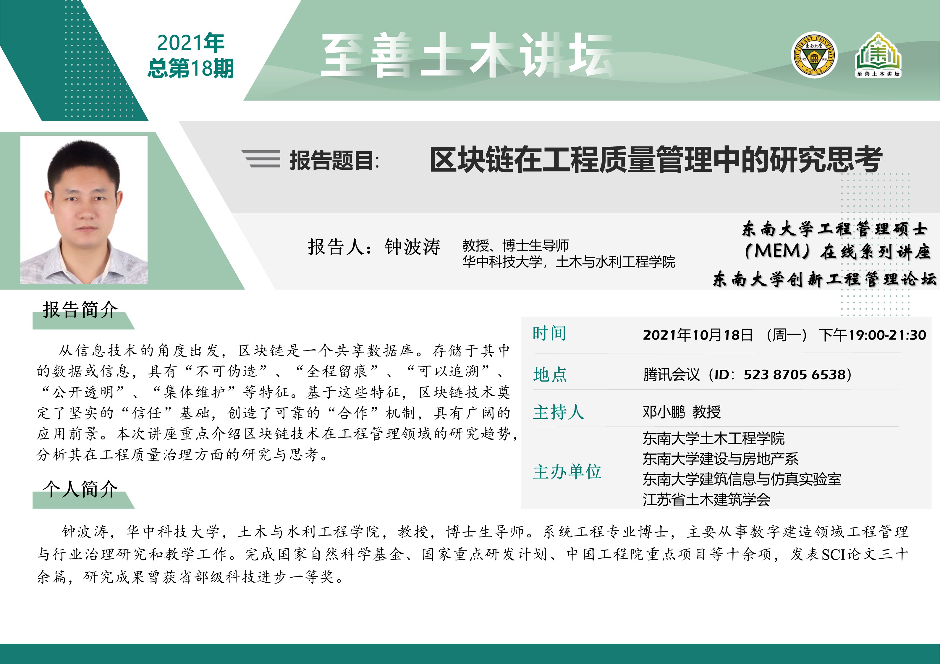 至善土木讲坛 2021年总第18期|区块链在工程质量管理中的研究思考