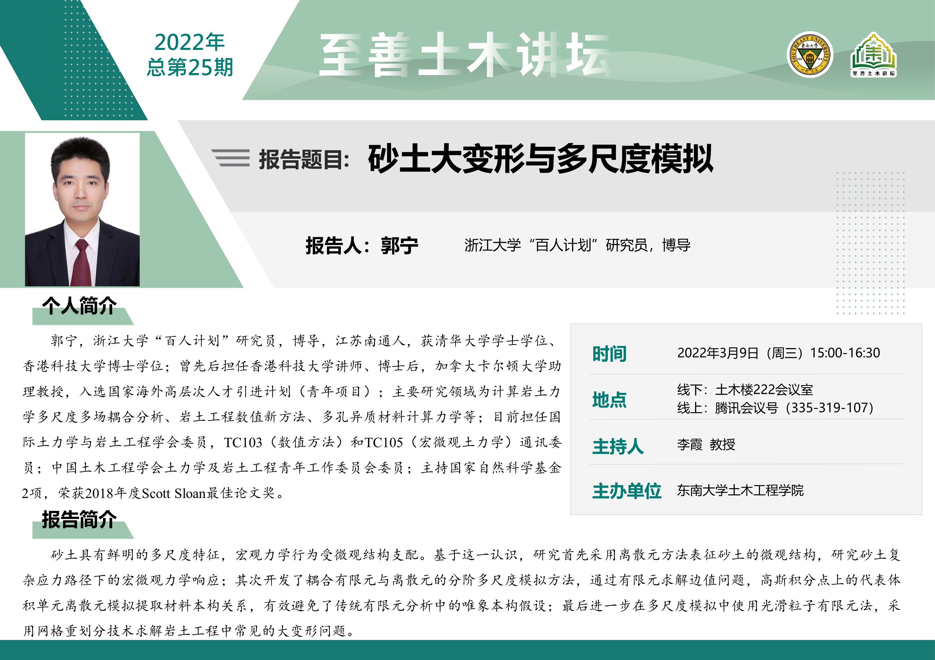 至善土木讲坛 2022年总第25期 | 砂土大变形与多尺度模拟