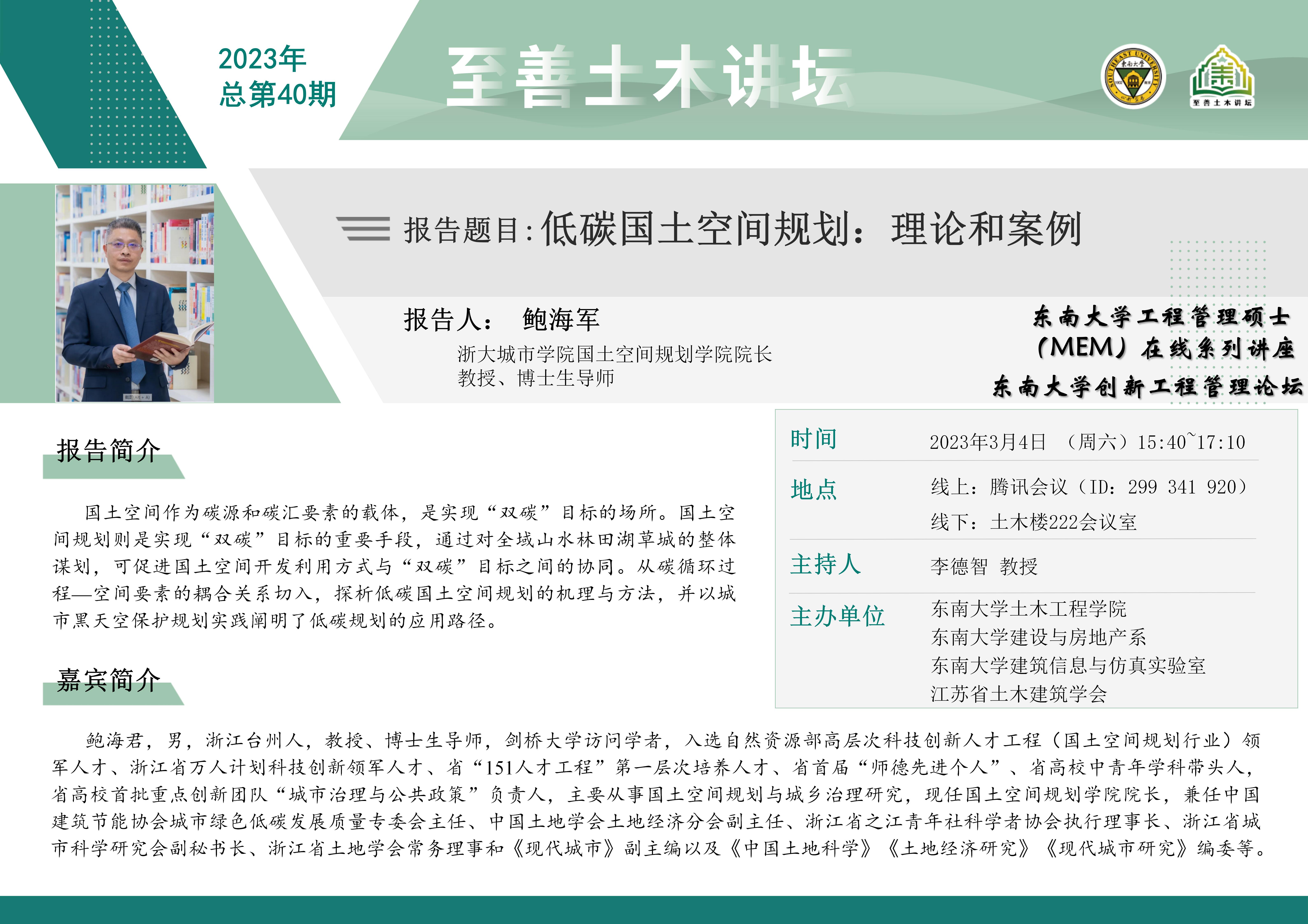 至善土木讲坛 2023年总第40期 | 低碳国土空间规划:理论和案例
