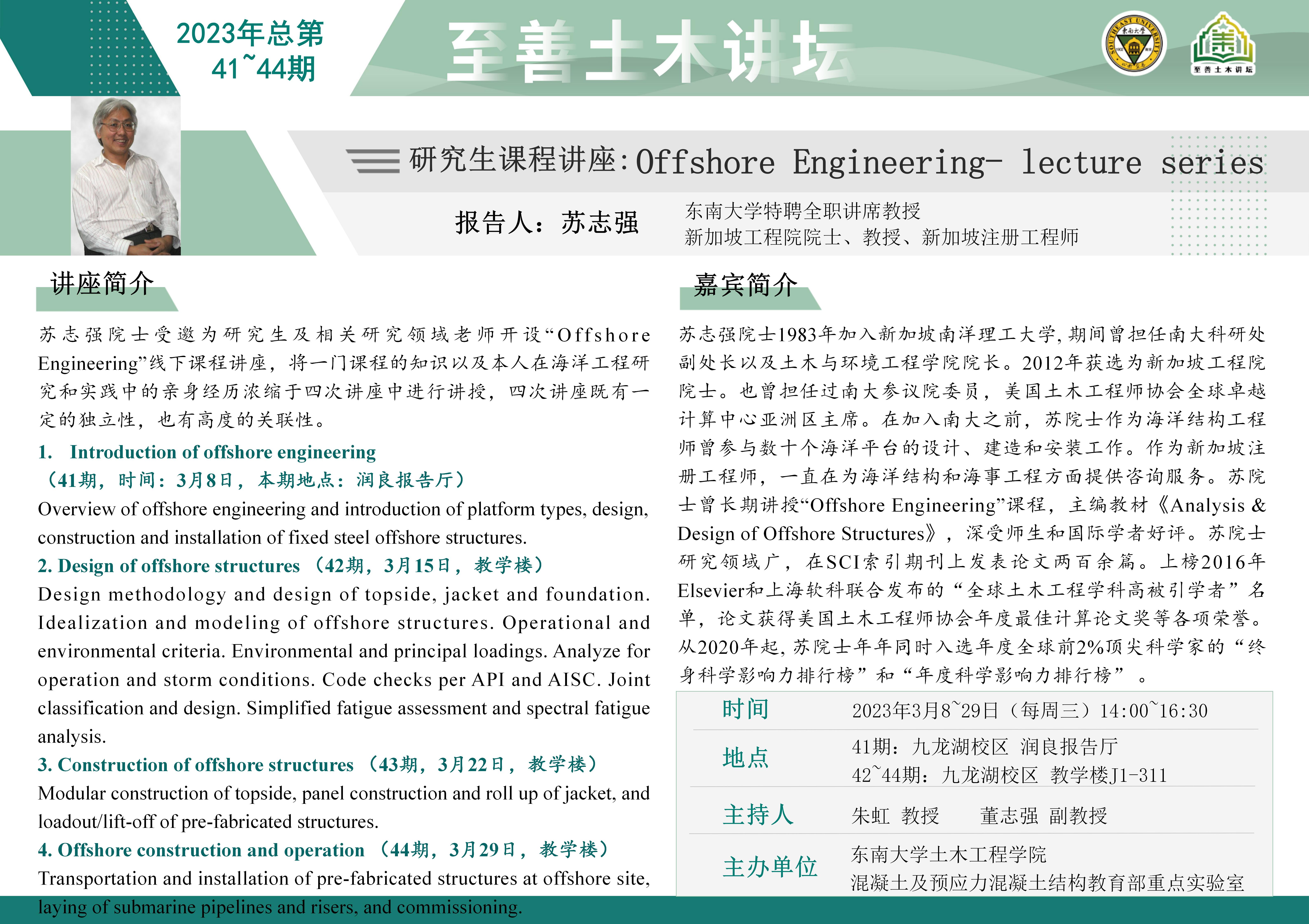 至善土木讲坛 2023年总第41~44期 | 研究生课程讲座 Offshore Engineering- lecture series