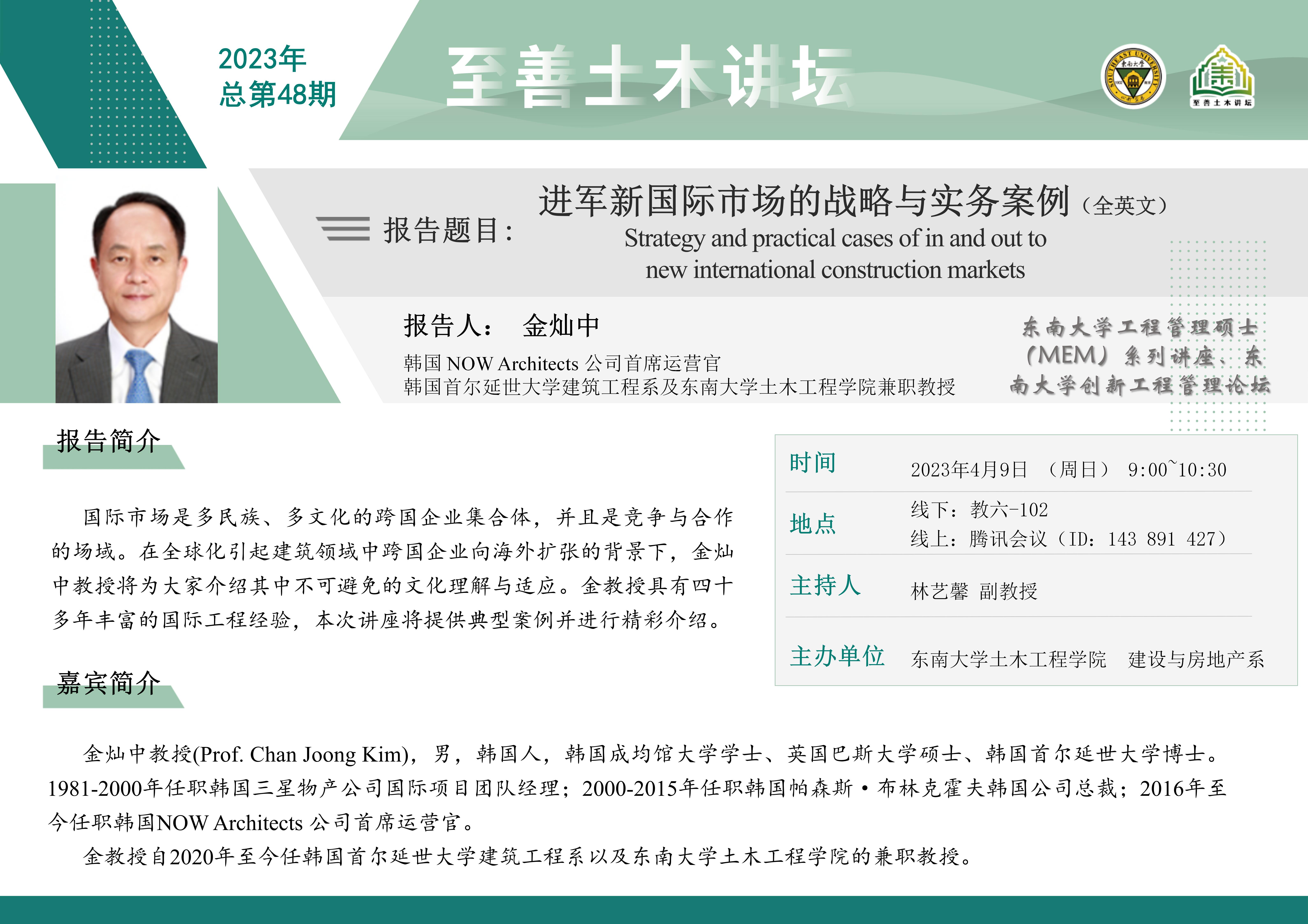 至善土木讲坛 2023年总第48期 | 进军新国际市场的战略与实务案例(全英文)
