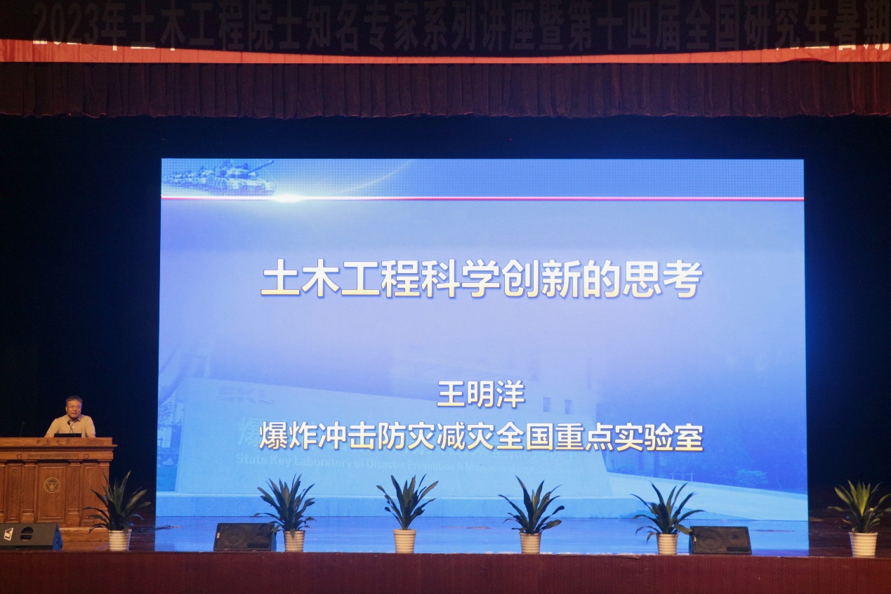 2023年7月6日上午9点30分,在暑期学校开学典礼后,中国工程院院士、中国人民解放军陆军工程大学王明洋教授为暑期学校学员们做了题为“土木工程科学创新的思考”院士讲座,WilliamHill官方网站郭彤院长主持讲座。王院士的报告围绕科学创新需要科学精神、土木工程防护研究进展、土木防护发展创新转型三个方面展开。王院士的报告教导学员们“有系统之真知识”叫做科学、“可以教人求得有系统之真知识的方法”叫做科学精神;并介绍了大口径制导钻地炸弹、超高速动能弹和小型钻地核弹毁伤破坏机理及工程防护研究进展;最后探讨了野战工事多效一体综合防护、永备工事空地一体主动防护等防护工程创新发展新趋势。王院士的报告高屋建瓴,生动具体,深入浅出,学员们认真聆听报告。报告结束后,王院士耐心解答学员提出的问题,赢得学员们的阵阵掌声。