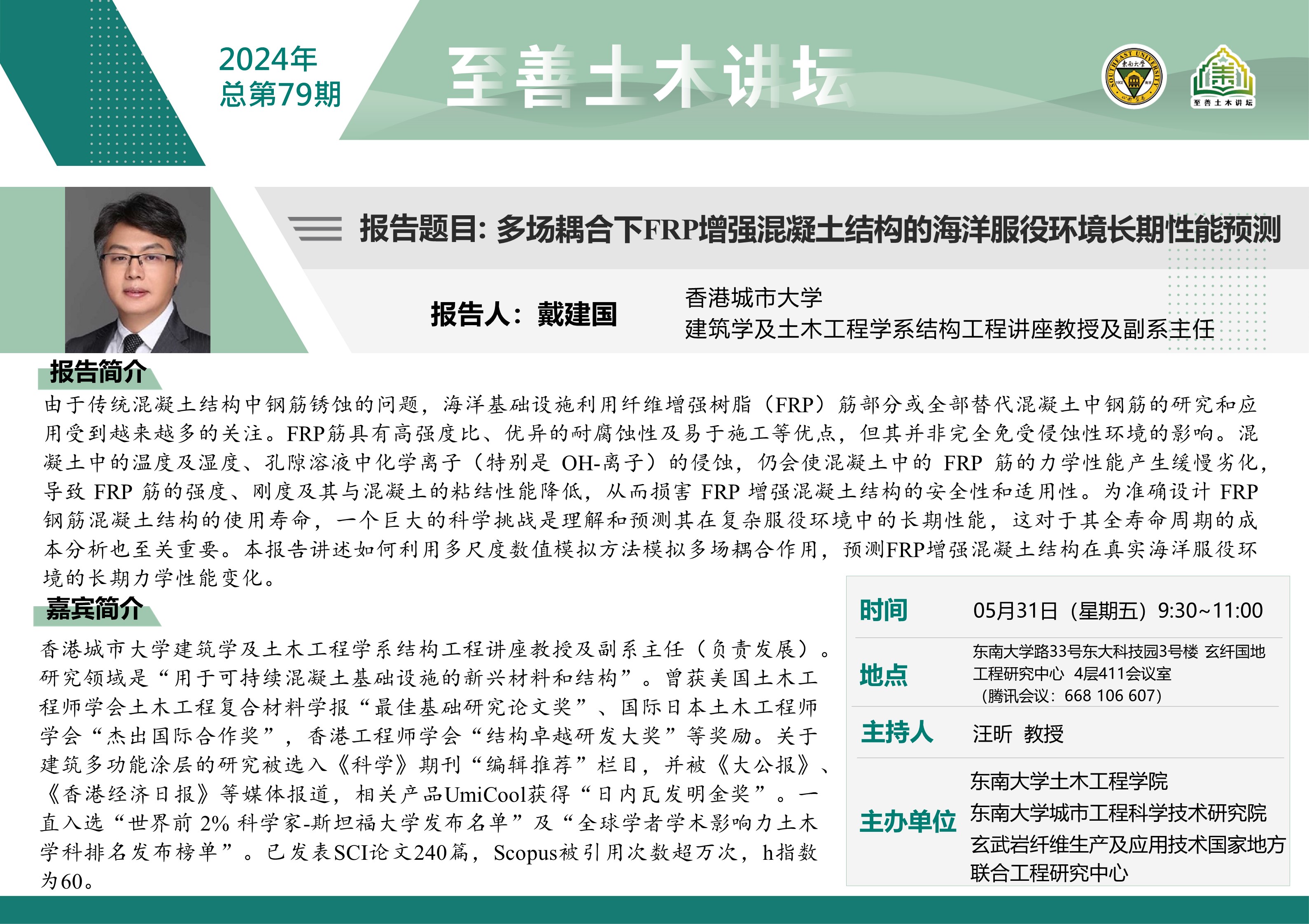 至善土木讲坛2024年总第79期 | 多场耦合下FRP增强混凝土结构的海洋服役环境长期性能预测