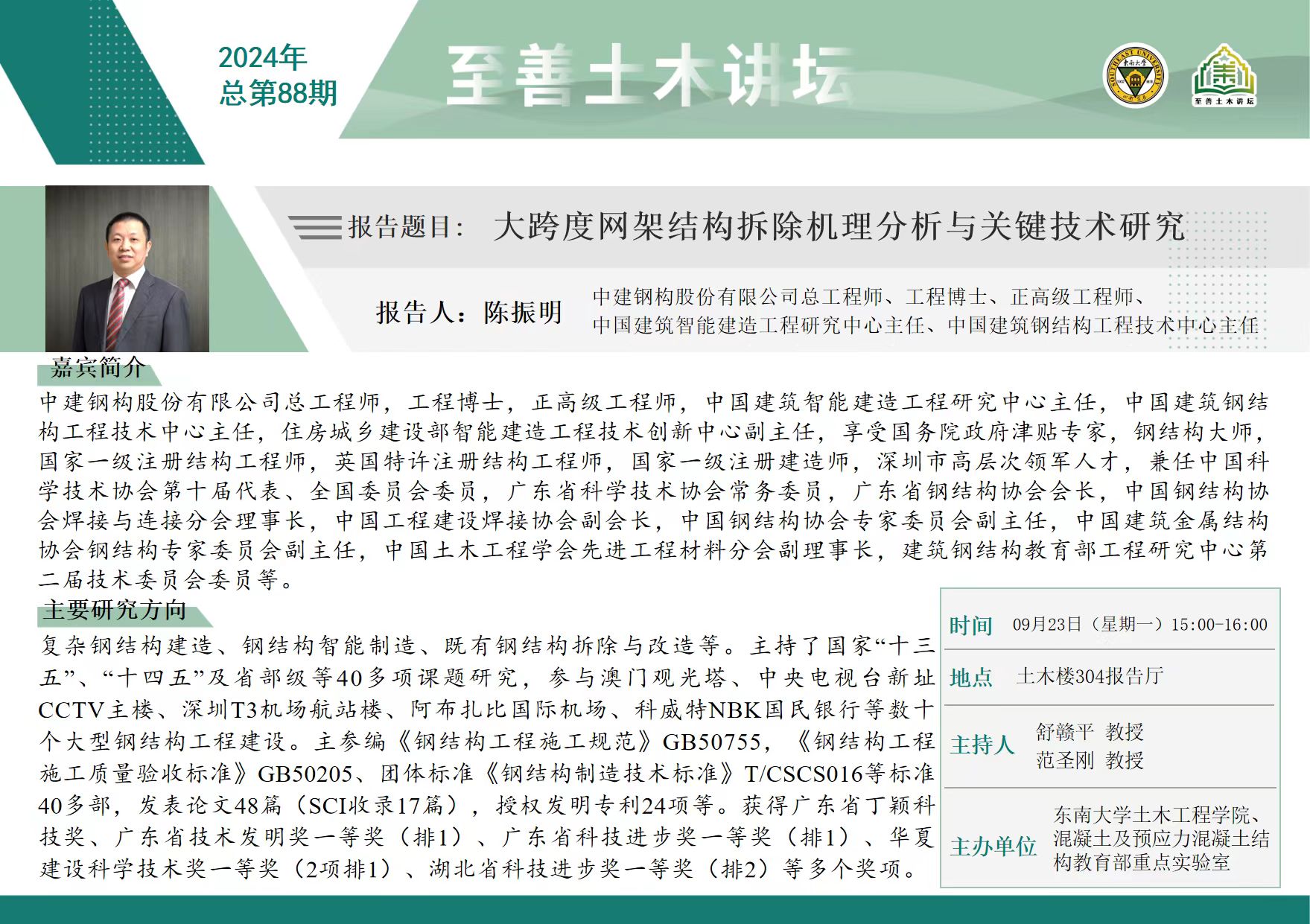 至善土木讲坛2024年总第88期 | 大跨度网架结构拆除机理分析与关键技术研究