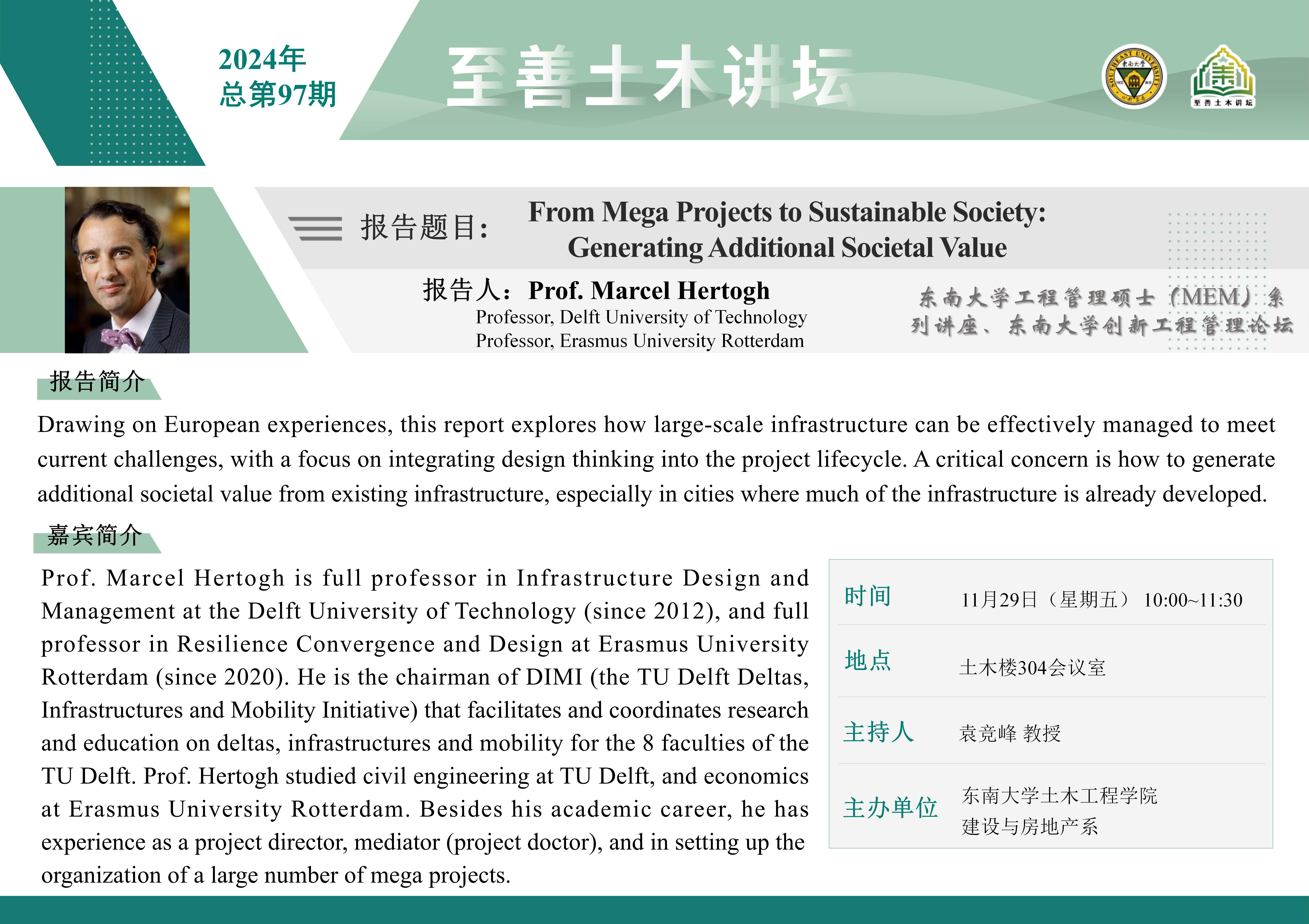 至善土木讲坛2024年总第97期 | From Mega Proiects to Sustainable Society: Generating Additional Societal Value