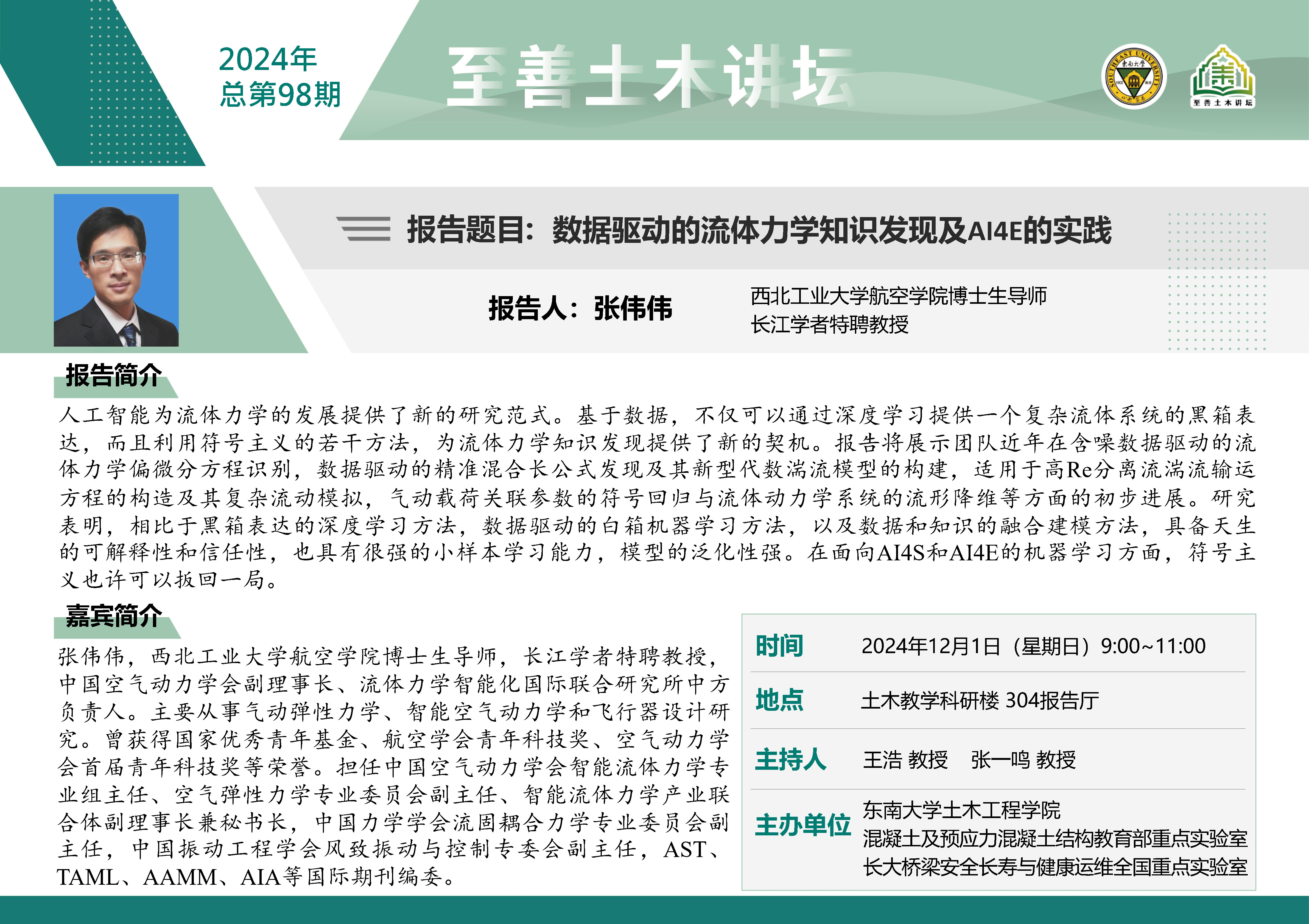 至善土木讲坛2024年总第98期 | 数据驱动的流体力学知识发现及AI4E的实践