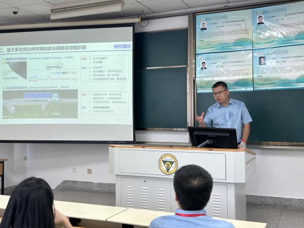 williamhill英国官网副研究员茅建校老师随后带来了题为“大跨度桥梁风效应智能化监测及控制研究进展”的讲座。茅老师从现代桥梁跨度超大化和结构轻柔化的发展趋势出发,指出桥梁风振问题研究的紧迫性。茅老师系统介绍了其团队在桥梁风振监测领域的最新成果,重点展示了桥梁性能参数动态追踪的多种技术实现手段,并介绍了应用于苏通大桥、虎门大桥、润扬大桥、南京四桥等多座大桥风振性能评估的桥梁模态参数动态追踪软件。相比于传统的风洞试验和有限元分析等方法,该技术在准确性与时效性方面展现出显著优势。茅老师也展示了用于风振控制的多种特殊阻尼装置。最后,茅老师提出了“监测-控制-评估”一体化智慧系统的创新构想,鼓励同学们融合气象观测与现场实测,通过交叉学科的协同创新,不断提升监测精度与控制效率,为桥梁工程的安全性和可靠性提供坚实保障。