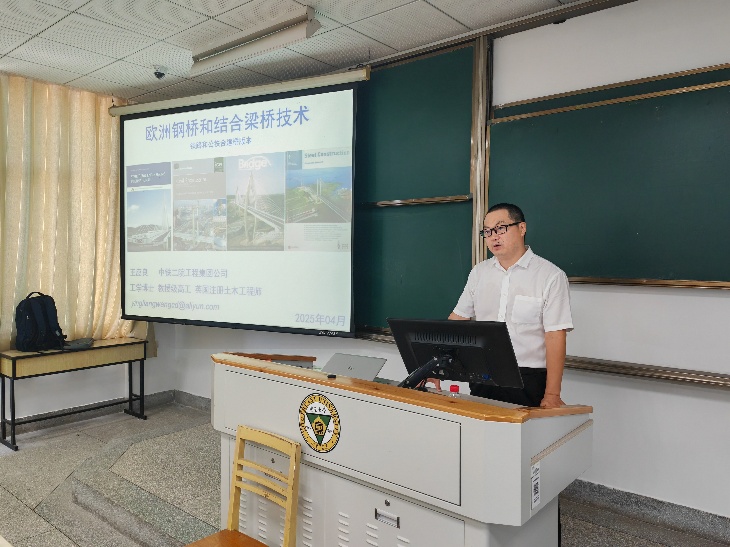 8月15日上午,中铁二院集团工程公司王应良高级工程师为同学们带来了题为“欧洲钢桥和结合梁桥技术”的讲座。王总工程师以欧洲钢桥和结合桥梁典型案例为切入点,通过详实的技术参数分析,生动展现了欧洲桥梁的技术特色。接着,王总工程师详细介绍了欧洲钢桥和结合梁桥规范体系,着重对比了中欧规范的差异,深刻阐释了规范设计对桥梁结构安全的重要性。最后,王总工程师提出了“安全、经济、优雅”的桥梁设计理念,强调扎实的结构理论基础、自主创新结设计方法以及国际视野的培养是成为优秀桥梁工程师的必由之路。