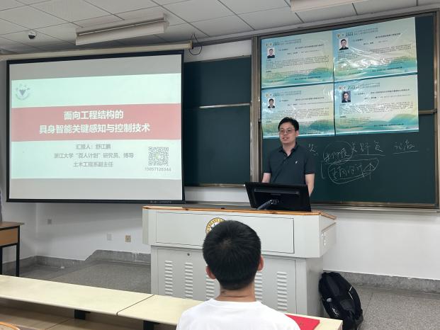 在下午的讲座中,浙江大学舒江鹏研究员以“面向工程结构的具身智能关键感知与控制技术”为题,探讨了工程机器人技术在智能建造与检测中的前沿进展。他重点介绍了计算机视觉引导的机器人控制、图像与点云融合的结构检测,以及多源数据融合的数字孪生技术。舒研究员的演讲为学员们打开了工程智能化的新思路。