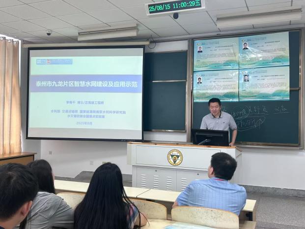 上午场讲座的最后,来自水利部交通运输部国家能源局南京水利科学研究院的李寿千正高级工程师,以泰州市九龙片区为例,分享了智慧水网建设的创新实践。他介绍了自主研发的水文水动力水质模型和物理模型,展示了“原型—模型—数字”三网融合的智慧水利系统建设实践。李工程师的演讲为学员们呈现了智慧水利技术在基层应用的生动案例。