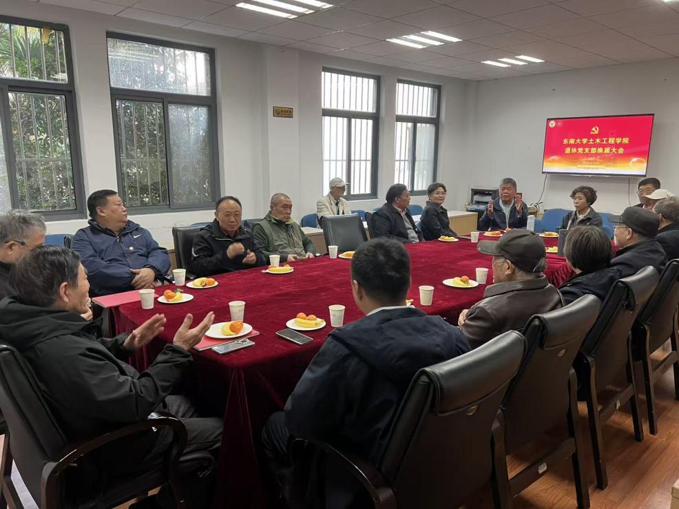 会议首先由党支部书记龚建民同志作支部工作报告。报告认真总结了三年来的工作成绩和存在的问题,同时也给新一届支部提出了工作希望。汤顶华书记要求新一届支部带领全体退休教职员工继续认真学习和领会二十届四中全会精神,为高质量发展中国式现代化作出努力,贡献自己的一份力量,为学校和学院的建设与发展献计献策。汤书记也表示将尽全力支持退休教职工的工作,尽快解决学院退协的工作和活动场所。全体到会党员积极发言,充分肯定了上一届支部的工作成绩,表扬了龚建民同志任劳任怨的工作精神。